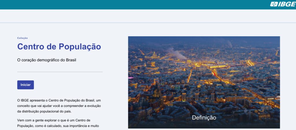 A nova página oferece uma experiência dinâmica e educativa. Por meio de mapas interativos, gráficos, imagens históricas e fotografias, o usuário pode navegar por diferentes décadas e acompanhar o deslocamento do Centro de População ao longo do tempo. Esse movimento reflete mudanças profundas na economia, nos fluxos migratórios, no processo de urbanização e na expansão das fronteiras agrícolas e industriais do país.