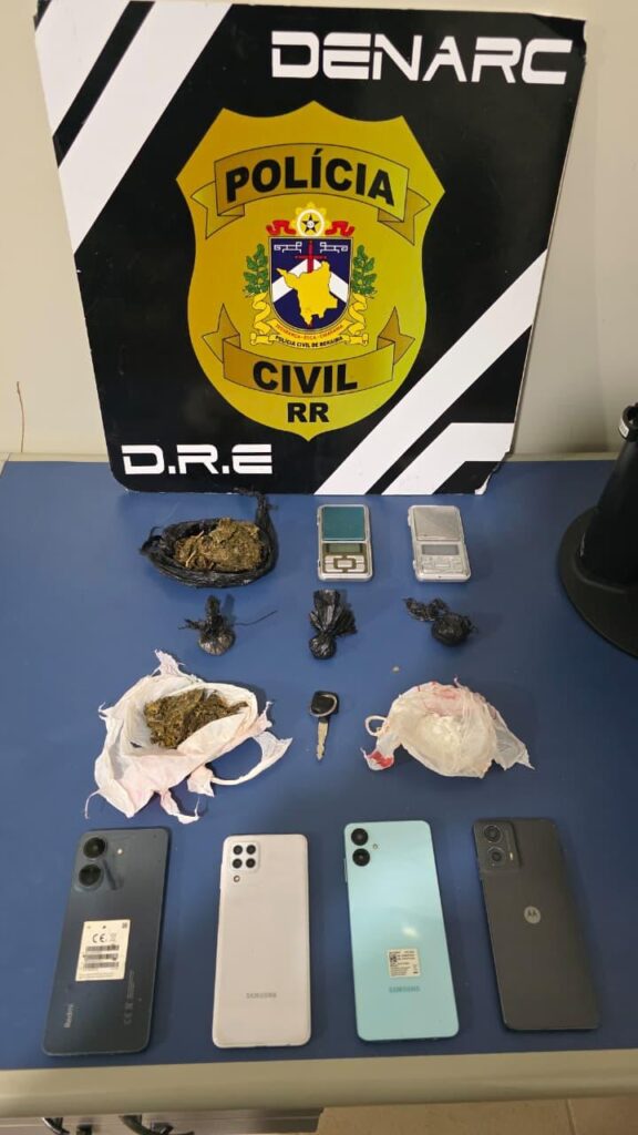 Uma operação da Polícia Civil de Roraima resultou na prisão em flagrante de três pessoas por tráfico de drogas em Boa Vista e associação para o tráfico. A ação foi realizada por equipes da DRE (Delegacia de Repressão a Entorpecentes) e do DENARC (Departamento de Narcóticos) nos bairros Pintolândia, Alvorada e Dr. Sílvio Botelho, na Zona Oeste da capital.